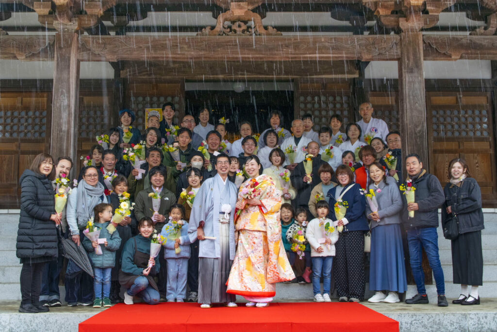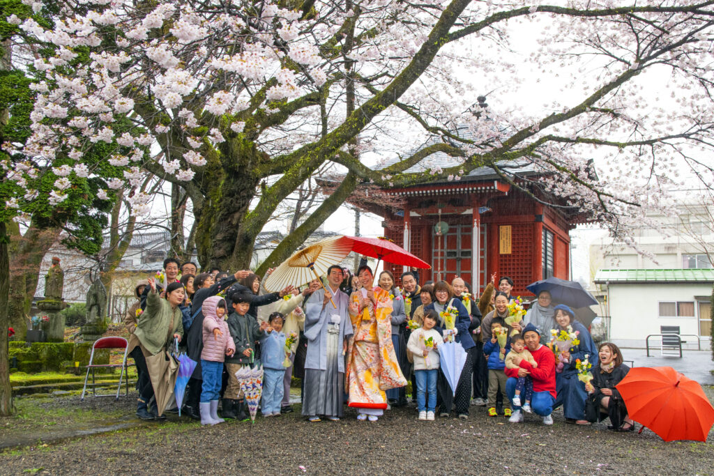 花まつりの中で行われた花嫁撮影では、天候が変わる中にもかかわらず、